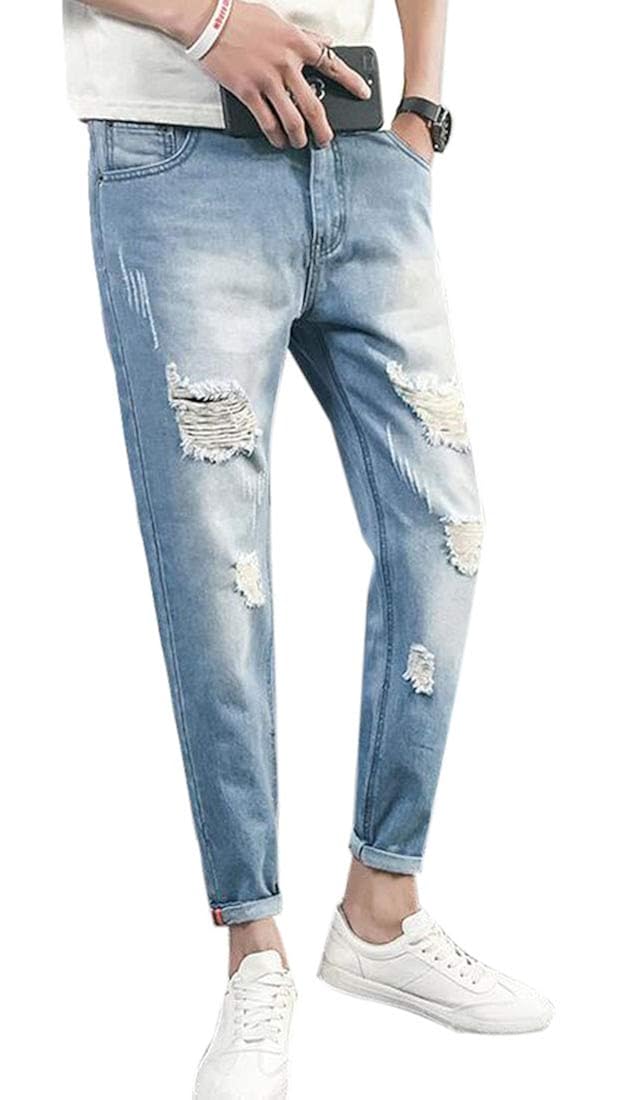 Wnsy Men Casual Washed Pocket Comfort Wash Ripped Slim Tapered Denim Pants Clothing Shoes Jewelry Foretadrenaline Com
